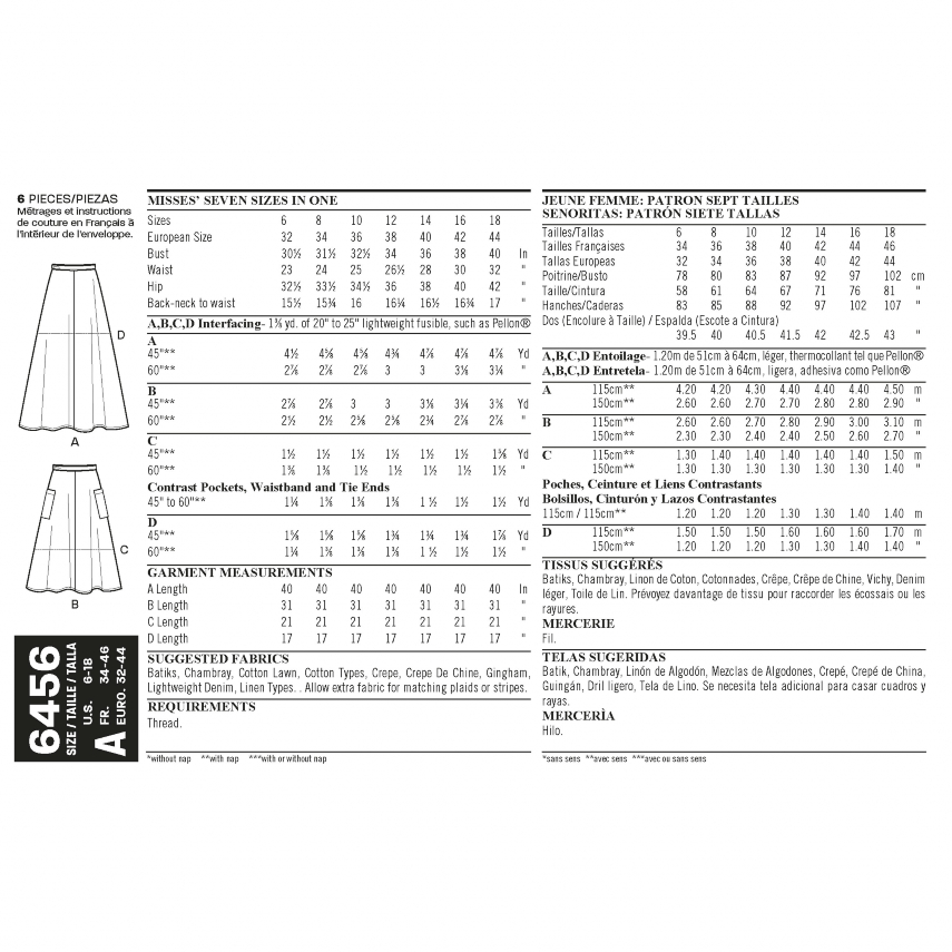 New Look Pattern 6456 Misses’ Easy Wrap Skirts in Four Lengths