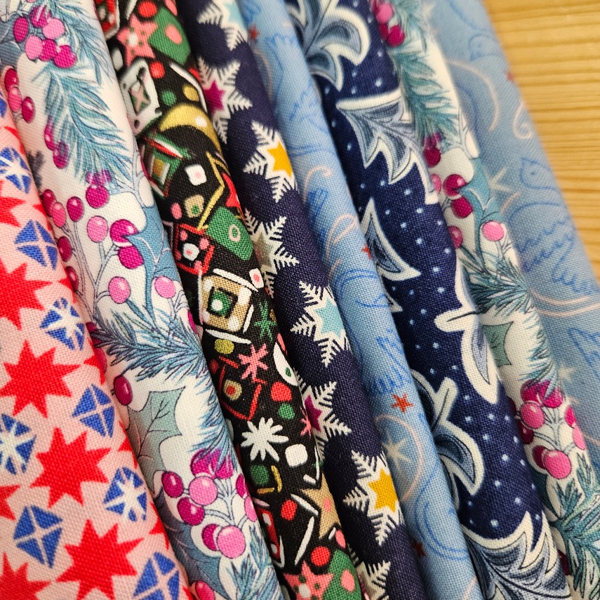 8 Craft Cotton Remnants in a range of Christmas patterned fabrics